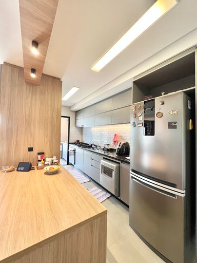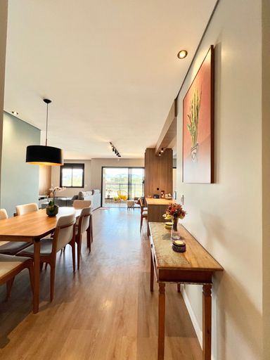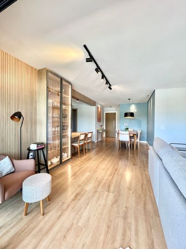 • Sala ampliada (planta original de 3 dormitórios) com ambientes integrados de estar, jantar e cozinha