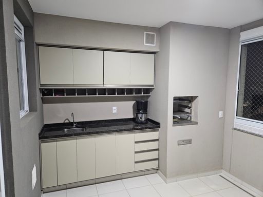 A ampla sala de estar e jantar integra-se à charmosa varanda gourmet com churrasqueira, ideal para reunir amigos e familiares. Conta ainda com cozinha planejada, área de serviço e banheiro social.