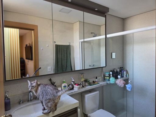 A encantadora varanda gourmet, envidraçada e equipada com churrasqueira 🔥, torna o espaço perfeito para receber. A cozinha conta com armários planejados, cooktop, forno e aquecimento a gás 🍽️. Os banheiros possuem revestimentos, espelhos e box de vidro 🚿.