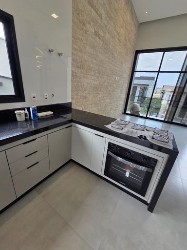 🍽 Cozinha integrada com armários planejados, balcão, forno elétrico e cooktop