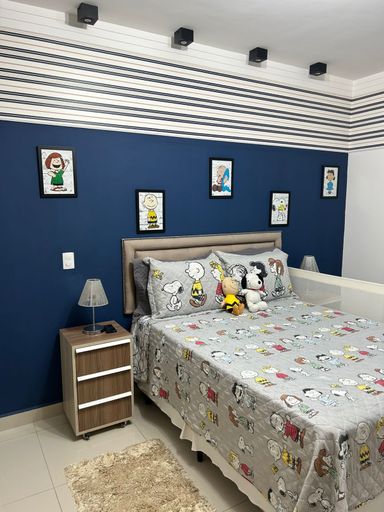 • Quartos com cortinas e móveis planejados
